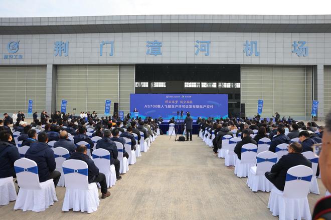 同日,在湖北省荆门市,航空工业特种飞行器研究所向太仓文旅集团移交"启航钥匙",完成AS700载人 飞艇批产首艇交付。 图为国产AS700载人飞艇批产首艇交付,太仓文旅集团取得"启航钥匙"。(受访单位供图) 目前,AS700载人飞艇已获42架订单。作为专为低空文旅场景打造的实用化航空器,载人飞艇最大航程 700千米,最大航时10小时,最大飞行速度100千米每小时,最大载人数10人(含1名驾驶员)。(记者 闫睿) 12月30日,由中国航空工业集团所属航空工业特种飞行器研究所自主研制的"祥云"AS700载人飞艇,成 功取得由中国民用航空局颁发的生产许可证,将正式迈入批量生产阶段。 图为12月30日,湖北荆门市,国产AS700载人飞艇获颁生产许可证暨批产交付现场。(受访单位供图) 2024年以来,AS700载人飞艇团队完成了超过187架次、累计602小时的安全试飞。"在此过程中,我们 建立起载人飞艇研发设计、生产制造、试验试飞、服务保障等全链条体系,培育了一支专业化队 伍。"航空工业特种飞行器研究所所长许明轩说。 ...