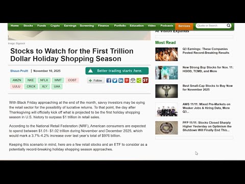 Greetings. I'm Sean Puit, Zach's equity strategist, and today I'm going to be discussing stocks to watch for the first trillion dollar holiday shopping season. So, with Black Friday approaching at the end of the month, savvy investors may be eyeing the retail sector for the possibility of lucrative returns.And to that point, the day after Thanksgiving will officially kick off what is projected to be the first holiday shopping season in US history to surpass 1 trillion in retail sales. And according to the N ...