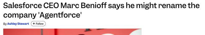 Salesforce首席执行官:公司可能将更名为“Agentforce”