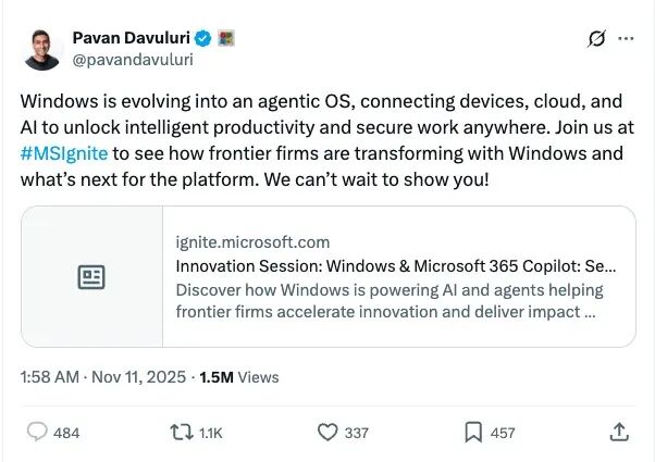 Core Insights - Microsoft is transitioning Windows into an "Agentic OS" that integrates AI capabilities deeply into user interactions, aiming to enhance productivity and security [4][6][12] - The announcement by Pavan Davuluri, head of Windows, was met with significant backlash on social media, indicating a disconnect between Microsoft's vision and user expectations [3][7][9] Group 1: Strategic Direction - Microsoft has unified all Windows engineering teams under Pavan Davuluri to strengthen AI capabilities within the operating system [4] - The shift towards an AI-driven operating system is seen as a critical strategic move for Microsoft, marking a new phase in Windows' evolution [4][5] - Davuluri's background includes extensive experience in operating systems and hardware integration, positioning him as a key figure in this transformation [5] Group 2: User Reactions - The response from developers and users has been overwhelmingly negative, with many expressing a desire for a stable and reliable operating system rather than an AI-centric approach [7][9][10] - Prominent voices in the tech community have criticized Microsoft's direction, suggesting that developers may prefer alternatives like Mac or Linux for better control [8][9] - Users have voiced concerns about Windows becoming bloated and intrusive, with complaints about performance issues and unwanted features [10][12] Group 3: Company Response - In light of the backlash, Davuluri acknowledged the need for improvements in reliability, performance, and usability, indicating that user feedback is being taken seriously [16][17] - The company aims to balance product feedback with direct user opinions, although there is skepticism about which feedback will be prioritized [17]