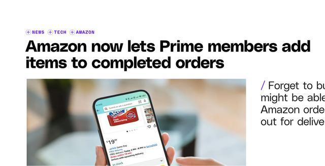 亚马逊推出新功能:Prime会员现可将商品添加至已发货订单