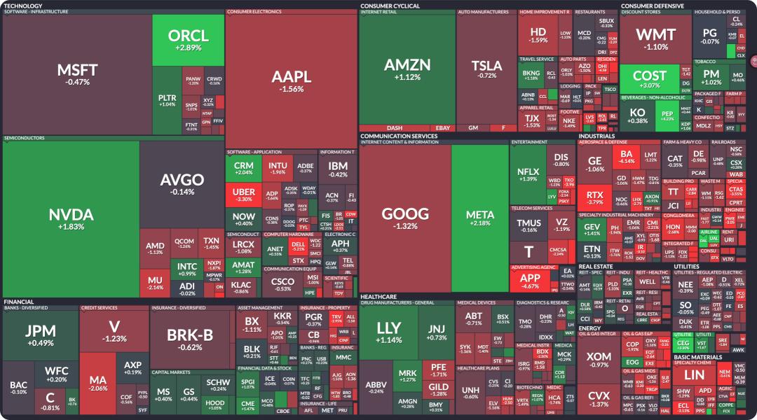 美股市场在缺乏关键经济数据的情况下,波动性有所增强。投资者对前期涨幅巨大的科技股和周期性资产可能存在的泡沫风险表现出担忧,导致日内获利 了结的压力显著增强。 尽管尾盘时段,市场对微软数据中心需求的乐观预测带来了支撑,促使大盘跌幅收窄,但标普500、纳指和道指最终仍以下跌收盘。 从资金流向来看,投资者正在进行明显的板块轮动:资金抛售了对经济周期敏感的板块,并转向了医疗保健、必需消费品等防御性板块,这体现了市场对 宏观不确定性的对冲需求。 甲骨文收高3.06%,其上涨受到华尔街分析师的积极推动。券商TD Cowen在最新的研报中,将甲骨文列为"首选股"(Top Pick),明确看好其AI业务将产 生巨大的收益增长。,贝尔德公司也于当日首次覆盖甲骨文,并直接给予了"跑赢大盘"的评级。 微软预测:算力短缺危机将持续到2026年! 英伟达延续昨日涨势,今日该股创盘中与收盘历史新高,市值逼近4.7万亿美元。 据美股投资网了解到,美国商务部工业和安全局已根据今年5月达成的双边人工智能协议条款,向英伟达公司颁发出口许可证,批准其向阿拉伯联合酋长 国出口价值数十亿美元的芯片。 10月9日,据美股投资网了解到,微软公司内部的最新 ...