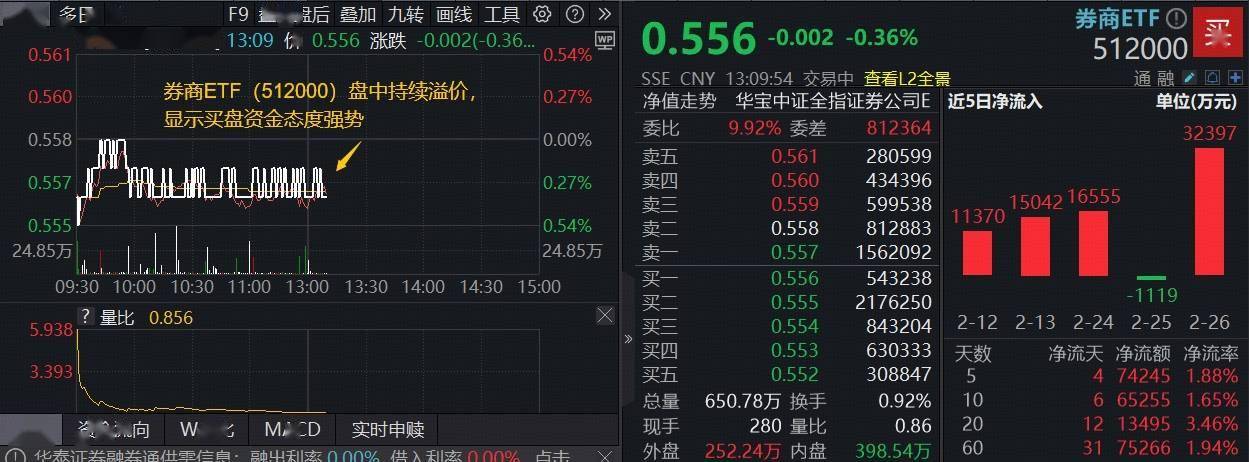 居民存款迁移,驱动券商马年机会!券商ETF(512000)年线下方溢价高企,低位布局窗口打开