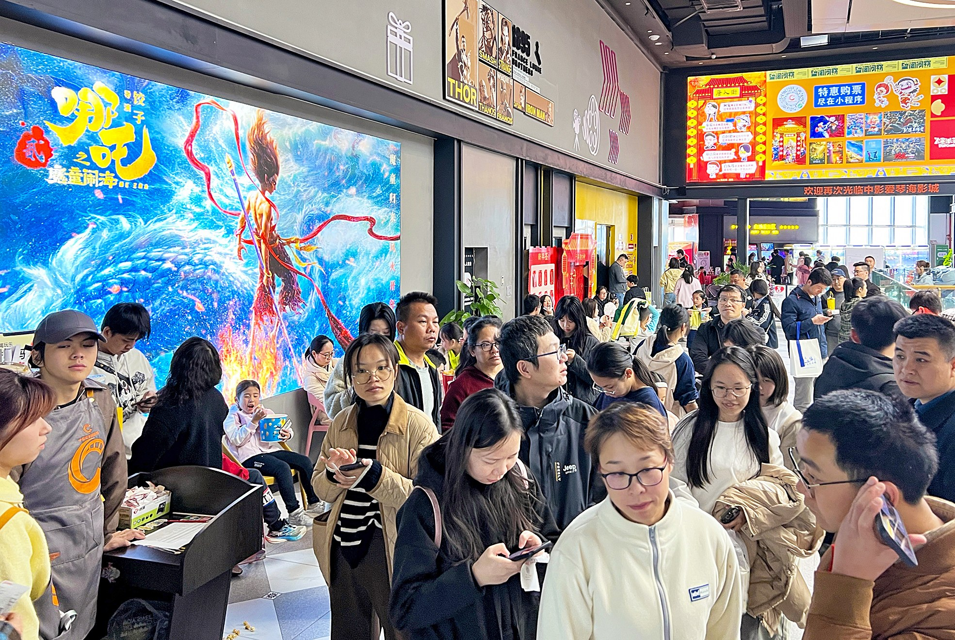 据票务平台数据,截至7日零点,2026年全国电影票房已超9亿元。过去的这一年时间,银幕上丰富多元的呈现,让中国电影成为文化产业的重要支撑,也不 断打开经济增长的新空间。我们一起从光影的世界里,找到产业发展的新变化。 电影成为文化产业的重要支撑 2025年,您走进过多少次影院?印象深刻的电影有哪些? 一方面,18至30岁的年轻用户在内容平台上保持高度活跃,为影片宣发和口碑传播提供了重要助力;另一方面,30岁及以上观众占比保持稳定,成为动画电 影票房的重要支撑力量。 在随机采访中,有近九成的观众选择了动画类电影,近六成选择了科幻、喜剧、动作类电影,还有近四成的观众愿意为喜爱的作品二次甚至多次走进影院观 看。 从区域结构来看,当前,电影消费的下沉趋势进一步加强。2025年下沉市场贡献度达到近五年来的最高水平。与此同时,新用户和低频用户占比同比上升, 电影消费的覆盖面和纵深不断拓展,激活更深层的增量市场。 南宁一电影院内等待入场观影的市民。 (资料图) 在2025年的电影市场中,动画电影成为最受关注的亮点之一,57部影片贡献了超250亿元票房,动画电影的受众基础也在不断拓宽。 动画电影何以成为"半壁江山"? 相信大家 ...