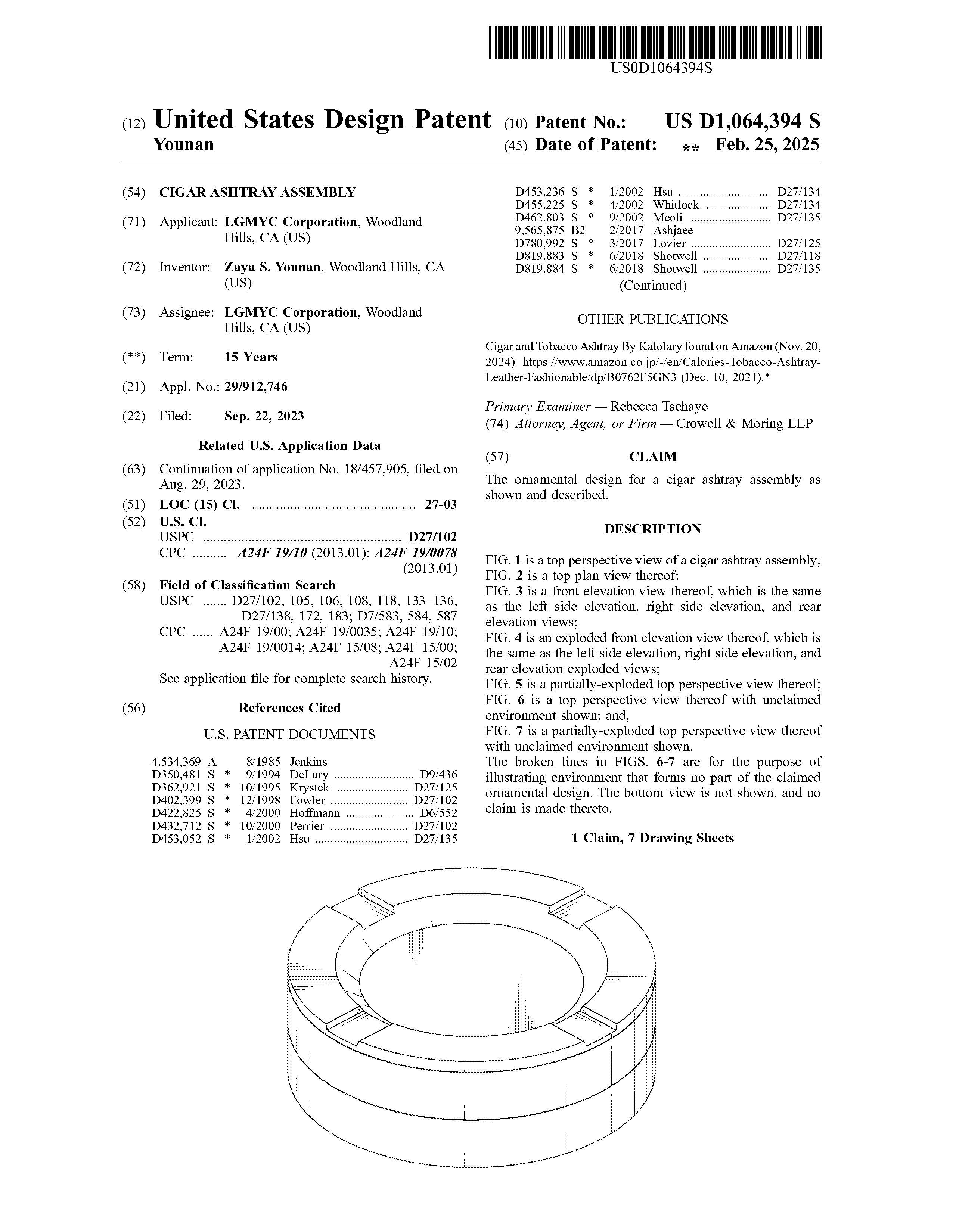 Zaya Younan, El Septimo CEO, Awarded U.S. Design Patent for Revolutionary Refrigerator Ashtray