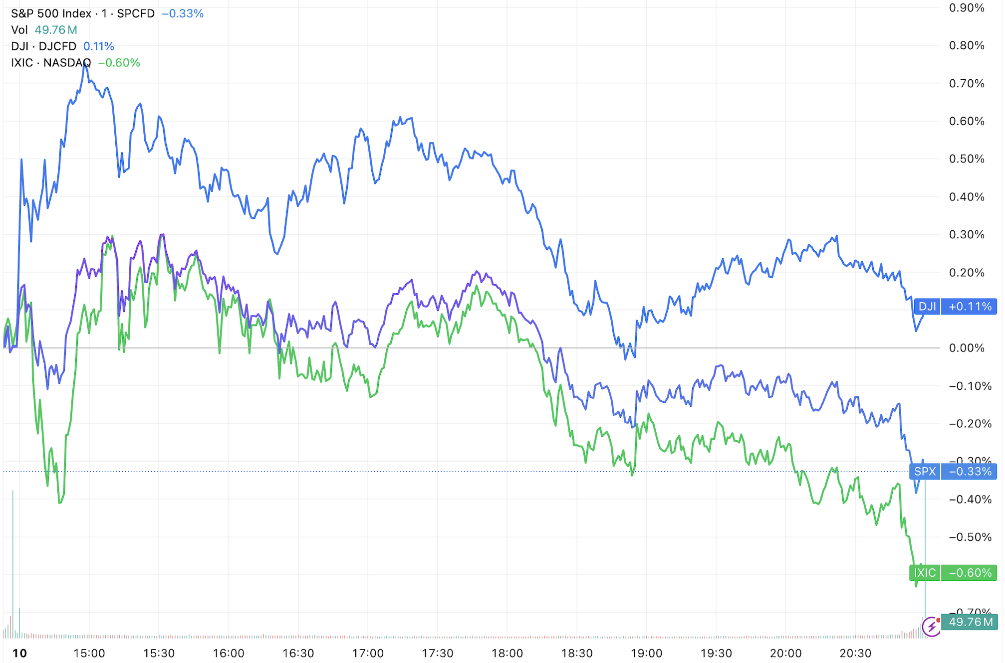 美东时间周二,三大指数涨跌不一,标普500指数和纳指均录得下跌,道指小幅上涨,再创收盘历史新高。 道指盘中一度录得连续第三个历史新高,此前已在上周五首次突破5万点大关。 (三大指数日内走势,来源:TradingView) 截至收盘,道琼斯指数涨0.10%,报50,188.14点;标普500指数跌0.33%,报6,941.81点;纳斯达克指数跌0.59%,报23,102.47点。 零售股周二明显承压,好市多下跌逾2%,沃尔玛下跌逾1%。 周二公布的最新零售销售数据显示,美国12月消费者支出环比持平,低于预期的增长0.4%。而11月零售销售曾增长0.6%。 Ameriprise Financial首席市场策略师Anthony Saglimbene表示:"当前中低收入消费者承压的另一关键因素,是他们对就业环境的感受,而我们知道他们的信 心正在变得更加不确定。如果1月就业增长不及预期,可能会对市场这种'普涨'主题造成一定冲击。" 金融股周二同样承压,PL Financial暴跌8.3%,嘉信理财下跌7.4%,摩根士丹利跌逾2%。 科技平台Altruist推出了一款基于人工智能(AI)的税务规划工具,引发市场对AI冲击 ...