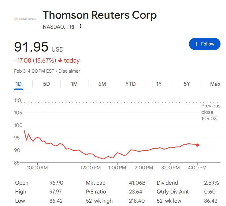 路透盘中跌超20%!美股爆发AI恐慌!Anthropic新工具掀软件股抛售