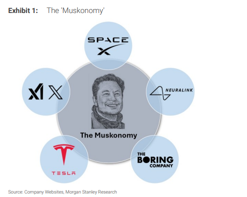 November 10, 2025 11:00 AM GMT Tesla Inc | North America Post AGM: Text & Drive, xAI, Tera-Fab, AI Sats, 1 Cybercab ever 10 Seconds? More than 75% of shareholders voted to approve Elon's $1tn long-term compensation package. While this was the most important takeaway - it is also the least surprising. We focus on a few other potentially overlooked items that will matter to the share price over the next 6 to 12 months. Exhibit 1: The 'Muskonomy' Source: Company Websites, Morgan Stanley Research | M November 1 ...