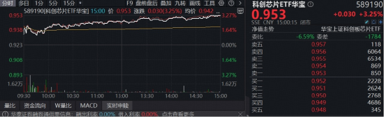 2月9日,算力硬件方向爆发,芯片股集体起立,上证科创板芯片指数全链布局芯片产业,囊括的50只成 份股47只收涨,33股涨超2%,芯片设计方向涨幅居前,芯原股份领涨14.87%,澜起科技涨超6%,寒武 纪-U涨近5%,海光信息涨超3%。全"芯"科创芯片ETF华宝(589190)高开高走,场内价格收涨逾3%, 收复5日线,环比放量。 | 分时 多日 1分 5分 15分 · | | | | F9 盘前盘后 叠加 九转 面线 工具 @ 2 | | 科创芯片ETF华宝 O | | 589190 | | --- | --- | --- | --- | --- | --- | --- | --- | --- | | 589190(科创芯片ETF华室] 15:00 价 0.953 涨跌 0.030(3.25%) 均价 0.942 ... 0.953 | | | | | | 0.953 | | +0.030 +3.25% | | a managaman manager manager and | | | | | | SSE CNY 15:00:15 闭击 | | 7 0 H | | | | | | | 1.64% | 净值走势 ...