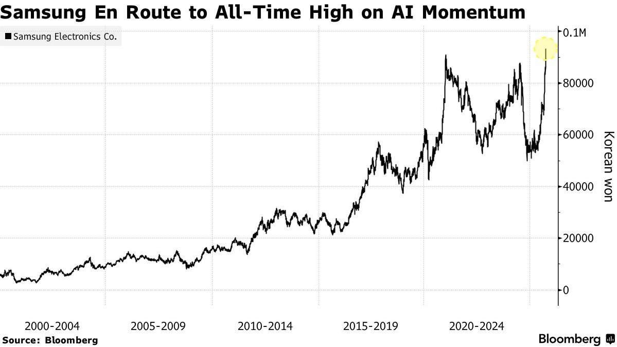 韩国芯片股表现强劲,三星电子和SK海力士股价双双创历史新高