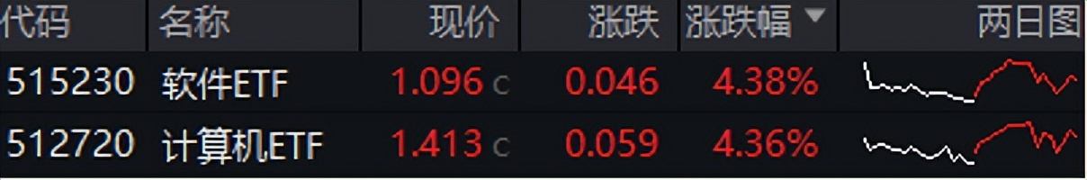 Group 1 - The software and computer sectors have shown significant growth, with the Software ETF (515230) rising by 4.38% and the Computer ETF (512720) increasing by 4.36% [1] - The Ministry of Industry and Information Technology has issued an action plan for the high-quality development of industrial internet platforms, aiming for over 450 influential platforms and more than 120 million industrial equipment connections by 2028 [2] - There is a strong market expectation for major companies to release flagship large models before the Spring Festival, with notable companies like ByteDance and Deepseek anticipated to narrow the performance gap with overseas counterparts [2] Group 2 - The GEO (Generative Engine Optimization) concept is gaining traction, representing just the tip of the iceberg in AI applications, focusing on optimizing generative AI platforms for better brand and product visibility [2] - The commercialization of AI software is accelerating, with AI Agents expected to be rapidly deployed by 2026, presenting investment opportunities in software ETFs and computer ETFs [3]
