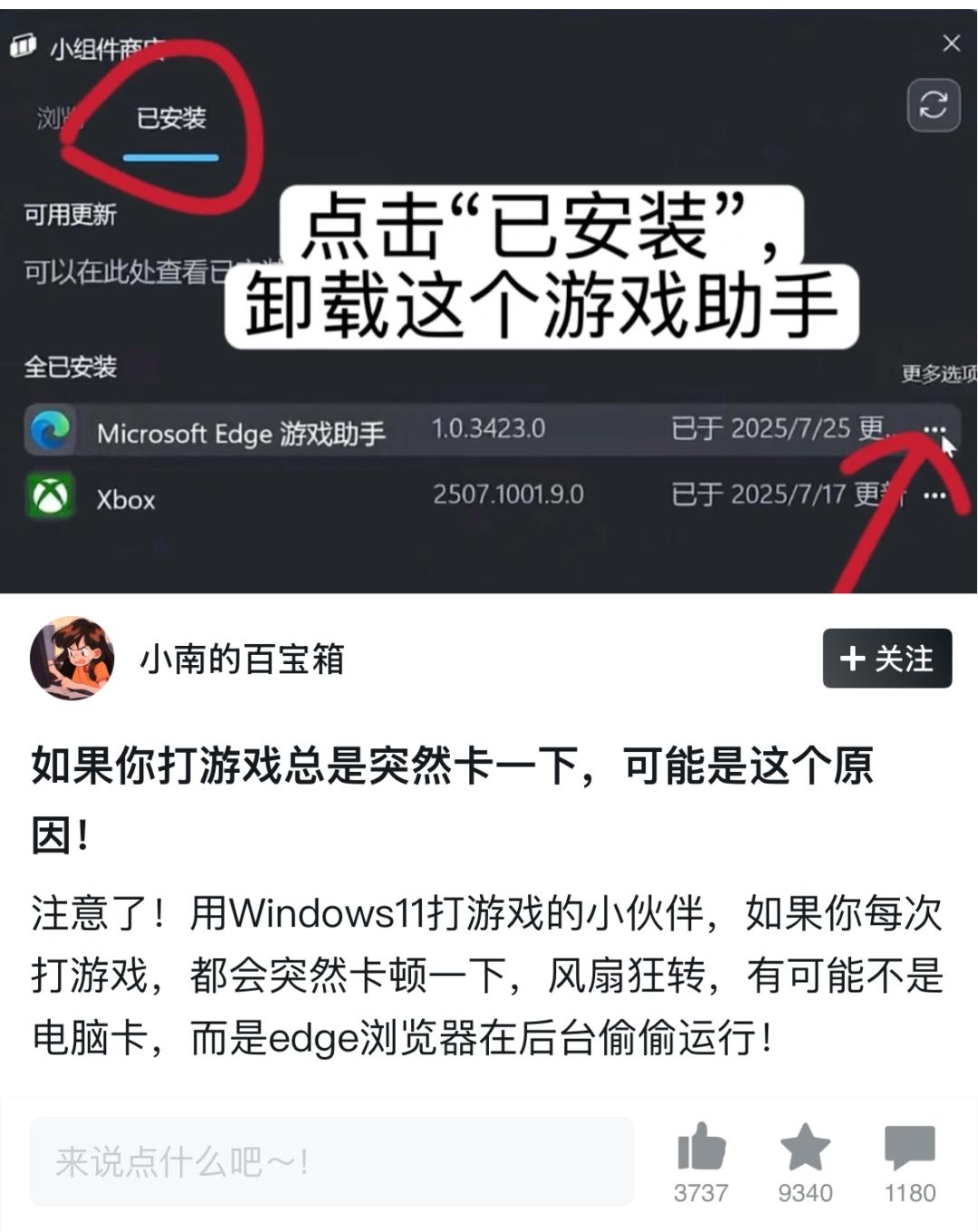 每位资深玩家,在对枪失败、团战暴毙后,都有一套神圣的仪式: 你很可能被"Edge 游戏助手"背刺了。 这两天差评君在各大平台都刷到一类帖子,说如果你最近打游戏一卡一卡的,就切到任务管理器,把 Edge 游戏助手结束掉就行。 别说,评论区一大堆人反馈有用。 "诶今天鼠标有点飘"、"这键盘键程不对"、"对面是不是开了?" 人之常情,俺也一样。 但这一次,兄弟们,借口是真来了。 如果你的电脑最近玩游戏莫名卡一下,导致对枪失败、操作失误。 问题真不一定在你—— 游戏助手是啥?不知道,差评君是没听过。 但你敢想,我打开任务管理器,看到后台居然也躺着这玩意(我连 Edge 都没打开)。 后来我查了下,才搞清楚 Edge 游戏助手真实身份。 听起来是不错,但现实很残酷。 游戏助手不仅让游戏变卡,还是个不请自来的自启程序。 就是你打游戏时按" Win+G "调出来的各种小组件。这些组件架在游戏上方,有的能录屏,有的能查资源占用。 这个 Edge 游戏助手,就是 Game Bar 里才出的一个浏览器小组件。 你可以边打游戏,边查攻略啥的。 把帖子转发给同事后,更是发现人手都有。。。 首先 Windows Game Bar 大家 ...