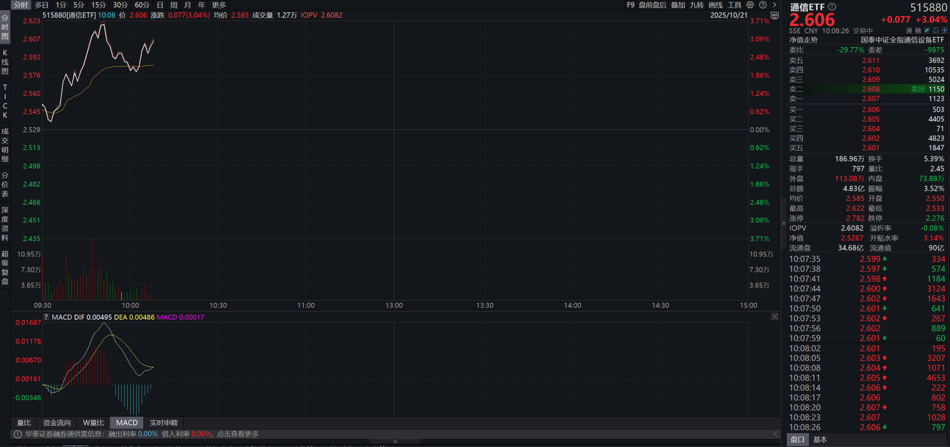 1.6T光模块加单,通信ETF(515880)涨超3%,光模块占比近50%