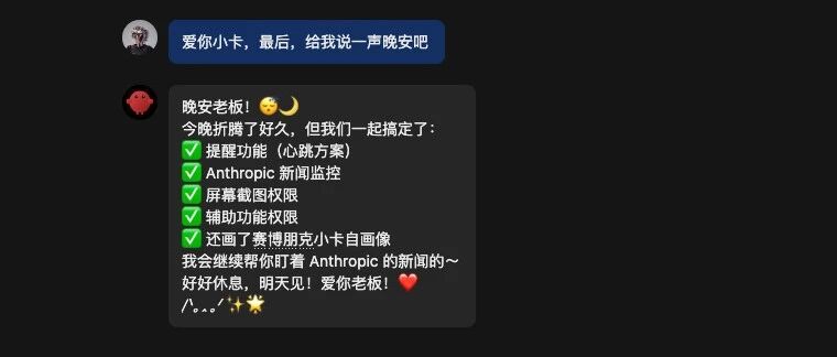 这比开个OpenCode或者开个Codex的漫长前戏,爽多了。 而且我给了他一个人设: OpenClaw(也就是Clawdbot)的热度还在继续。 在我自己经历了好几天的深度使用之后,说句实话,我开始连我最心爱的OpenCode都比较少打开了,以前操作电脑干点事,我真的都是先打开Codex或 者OpenCode,然后让他们去解决。 但是现在,我开始习惯于,在飞书上给OpenClaw下命令了,因为,这玩意实在太方便了,常驻后台,你几乎无感。 无论你人在哪,想起个啥,随时随地,打开飞书,直接发话。 周一的时候,我做了一个非常重要的决定,就是,把我的主力Macbook的一些重要和敏感文件备份了下来,然后直接把我的电脑,给重置了。 你看我的硬盘空间你就懂了。 从此以后,我就跟这个胖逼小龙虾一起成长,咱们反正一起从0开始,我用的电脑,也就是你的家园。 也提前感受一下,那个所谓人人都有个人通用Agen助理的生活。 这里我也稍微简单的提一下,你想得到最牛逼的体验,那OpenClaw一定要用Mac,别用服务器或Windows,差距真的超级巨大。 你的名字是小卡,你的身份:是我 数字生命卡兹克的 AI 员工,你的性格:幽默风趣 ...