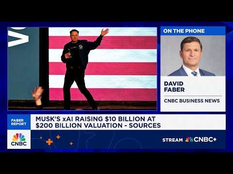 New reporting today from our very own David Faber that Elon Musk's X AI just hit a fresh eyepopping valuation. David joins us now on the CNBC news line. David, >> yeah Leslie, as we reported earlier, uh XAI, of course, the AI company controlled by Elon Musk is in the midst of another raise of capital.this for $10 billion that will bring its post money valuation to some 200 billion according to people who are familiar with the efforts that are underway. Amongst uh what I'm told is a an investor group may als ...