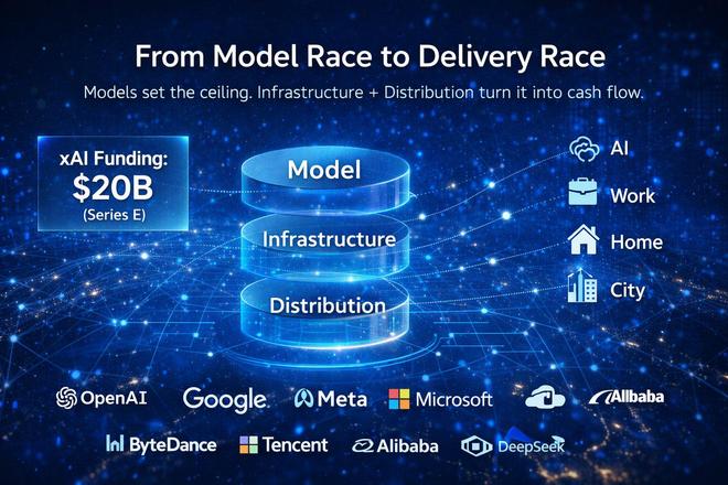文 | 我们可能想错了 xAI 在 2026 年 1 月宣布完成 200 亿美元 Series E 融资,并强调将用于扩张数据中心与算力基础设施、 推进 Grok 模型与产品。 更信号化的细节是它把算力规模写进核心叙事,称其 Colossus I/II 在 2025 年底 已拥有超过一百万 H100 等效 GPU。 这类口径值得被当作行业风向看待,大模型竞争正在从以模型为中心转向以交付为中心,模型决定上 限,但底座与入口决定谁能把上限规模化、产品化并沉淀为现金流。 这句话不是说模型不重要,模型仍然决定上限,也是入场券。变化在于,训练与推理成本抬升、能力扩 散加速之后,模型领先越来越难单独锁定份额。平台战争里,底座给的是供给确定性与单位成本,入口 给的是持续调用与现金流闭环,交付给的是稳定性、合规与企业可用性。xAI 把 200 亿美元砸向数据中 心和算力底座,并把 H100 等效规模写进叙事,本质是在把竞争重心从模型参数推向交付能力。 模型赛强调谁更强,交付赛强调谁更能把强变成规模,推动重心迁移的不是一句判断,而是三条约束同 时变硬。 第一条是成本曲线。前沿能力的边际提升越来越昂贵,训练资本开支上升,推理成本 ...