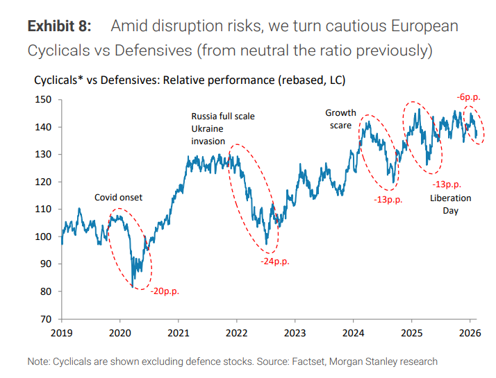 Leading bank flags AI disruption risk now affecting 24% of European equities as model capabilities surge Proactive uses images sourced from Shutterstock The market's perception of artificial intelligence disruption risk has exploded from affecting just 4% of the MSCI Europe index a month ago to 24% today, according to Morgan Stanley's latest assessment. The acceleration mirrors the early stages of the Covid pandemic sell-off, when risks that began concentrated in China rapidly broadened across sectors. ...