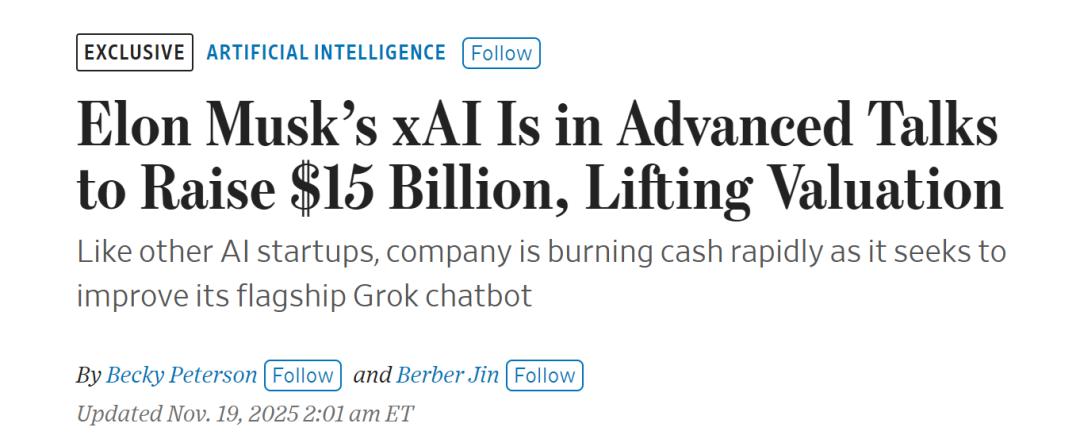 Grok4.1刚刷完榜就被Gemini 3反超,马斯克确实坐不住了! 虽然大大方方地给Gemini 3送去了祝福,但另一边老马却开始紧急筹钱—— 据华尔街日报最新爆料,xAI正计划新一轮150亿美元(约1067亿人民币)融资,公司估值也将来到2300亿美元(约1.6万亿人民币)。 2300亿,这个数字比马斯克今年3月披露的1130亿美元估值(xAI与X合并后估值),翻了一倍不止。 以至于网友们纷纷感慨,马斯克还是太超前了,我等凡人不懂~ 甚至,对比起OpenAI这样的增长怪兽,xAI的估值飙升速度也是让人咂舌。 毕竟OpenAI手上有着ChatGPT这样的全球爆款应用,每个月光是订阅费就能为OpenAI带来2亿多美元收入。 而xAI的核心产品Grok,目前仍深度捆绑在X(原Twitter)的生态之内,其用户规模和商业影响力,与前者显然不在一个量级。 AI热潮,由此可见一斑。 一览xAI融资情况 还是先说说xAI此轮曝出的新融资。 据华尔街日报透露,相关融资细节是由马斯克的财富经理Jared Birchall曝出的,但目前尚不清楚2300亿美元是投前还是投后估值,以及也没有说明资金用 途。 有意思的是,大约上周 ...