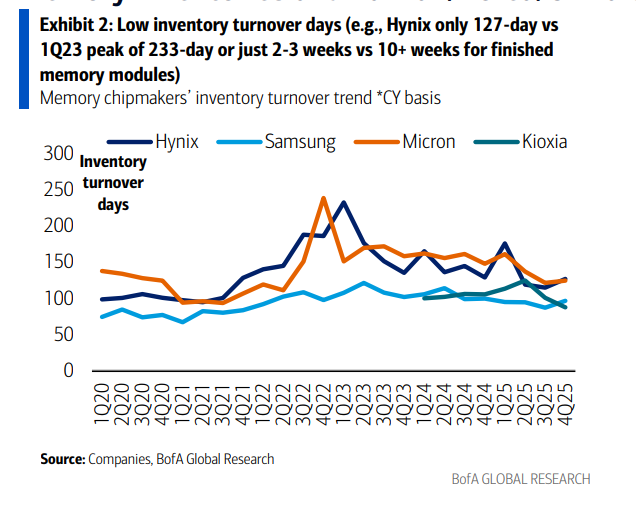 Core Insights - The storage industry is emerging from a downturn and entering a "super cycle" driven by AI demand, as indicated by the recent earnings reports from major storage companies [1] Group 1: Key Signals from Earnings Reports - Inventory levels have dropped below the "warning line," with SK Hynix's inventory turnover days decreasing from a peak of 233 days in Q1 2023 to just 127 days, indicating potential supply chain shortages [2] - Average Selling Prices (ASP) are experiencing significant recovery, with Samsung's DRAM ASP soaring by 40% quarter-over-quarter and SK Hynix's NAND prices increasing by 32% [2] - Major companies are aggressively increasing capital expenditures in response to surging demand for High Bandwidth Memory (HBM), with SK Hynix's capital spending projected to rise from 7 trillion KRW in Q4 2024 to 12 trillion KRW by Q3 2025 [2] Group 2: Market Trends and Price Movements - HBM4 production is exceeding expectations, which will influence future market share in AI computing [3] - The industry outlook is extremely optimistic, with projections for a long-term "storage super cycle," as noted by Nanya Tech's president, who claims the current cycle is better than the 2017-2018 cloud server boom [3] - The Memory Indicator from Bank of America has risen to 124, indicating an upward cycle, compared to an average of 103 in the first half of 2025 [4] Group 3: Current Market Conditions - DRAM spot prices remain high, with 16Gb DDR5 prices at $38, a year-on-year increase of 709%, and 16Gb DDR4 prices reaching $78, up 2445% year-on-year [6] - Despite some OEMs indicating temporary assembly line halts due to rising storage costs, overall sales data from Taiwan shows significant month-over-month growth exceeding 20% and year-on-year doubling for several manufacturers [7] - SSD prices have surged, with a weekly increase of 40% and a monthly increase of 60%, reflecting market concerns about potential shortages in the second half of the year [9] Group 4: Insights from Semicon Korea - The recent Semicon Korea event showcased a booming industry, with equipment suppliers benefiting from record capital expenditures by major players like Samsung and SK Hynix [10] - HBM production is time-consuming, requiring extensive equipment to maintain high output levels, which may impact supply timelines [12] - The adoption of Hybrid Bonding technology may face delays, as manufacturers prefer existing methods for HBM production [12]