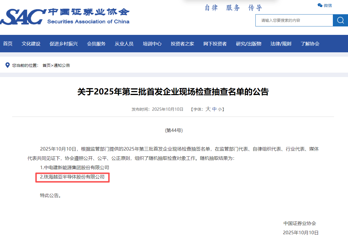 Core Insights - The China Securities Association has announced the third batch of companies for on-site inspections in 2025, including China Electric Power Construction Group New Energy Co., Ltd. and Zhuhai Yueya Semiconductor Co., Ltd. [1][3] Company Summaries China Electric Power Construction Group New Energy Co., Ltd. (电建新能) - The company is the only platform under China Electric Power Construction (601669) engaged in domestic renewable energy investment, operation, and management, focusing on wind and solar power projects [4] - As of Q1 2025, the company has a total installed capacity of 21.2461 million kW, holding a market share of 1.43% in the national market, with wind power at 1.85% and solar power at 1.20% [4] - The company plans to raise approximately 9 billion yuan through its IPO, ranking second in fundraising among A-share IPO applicants, following China Resources New Energy's 24.5 billion yuan [4] - Revenue has shown steady growth from 8.382 billion yuan in 2022 to 9.81 billion yuan in Q1 2025, with net profit increasing from 1.768 billion yuan to 2.589 billion yuan in the same period [4] Zhuhai Yueya Semiconductor Co., Ltd. (越亚半导体) - This smaller private enterprise focuses on the R&D, production, and sales of advanced packaging materials and products, including IC packaging substrates and embedded packaging modules [6] - The company's revenue has fluctuated, with figures of 1.667 billion yuan in 2022, 1.705 billion yuan in 2023, and 1.796 billion yuan in 2024, while net profit decreased from 415 million yuan to 91.473 million yuan in the same period [6] - Despite having a higher gross margin than industry peers, the company's gross margin has declined from 38.97% in 2022 to 24.42% in the first half of 2025, attributed to falling product prices and rising raw material costs [6] Regulatory Environment - The regulatory environment has improved significantly, with no companies withdrawing their IPO applications after being selected for on-site inspections in 2025, contrasting with previous years where high withdrawal rates were common [3][9] - The China Securities Regulatory Commission has implemented revised regulations emphasizing accountability during the IPO process, which has led to a notable decrease in the "one check and withdraw" phenomenon [10][11] - The termination rates for on-site inspections have decreased from 71.74% in 2021 to 50% in 2024, indicating a more stable IPO environment [8]