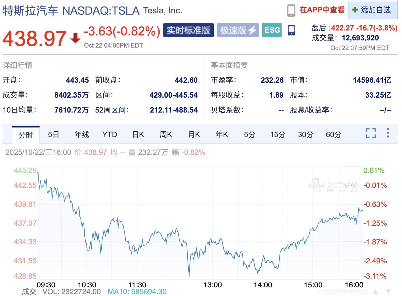 增收不增利,特斯拉三季度利润下滑近30%,股价一度跌近5%