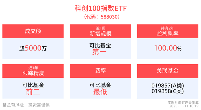 Group 1 - The Shanghai Stock Exchange Sci-Tech Innovation Board 100 Index experienced a slight decline of 0.01% as of November 11, 2025, with mixed performance among constituent stocks [3] - Weisheng Information led the gains with an increase of 5.08%, while Jinpan Technology saw the largest decline at 6.27% [3] - The Sci-Tech 100 Index ETF (588030) rose by 0.15%, with a recent price of 1.33 yuan, and has accumulated a 19.03% increase over the past three months [3] Group 2 - The liquidity of the Sci-Tech 100 Index ETF showed a turnover rate of 1.02% with a transaction volume of 58.9474 million yuan, and the average daily transaction volume over the past year was 376 million yuan, ranking first among comparable funds [3] - Meituan's first AI IDE product, Meituan CatPaw, has entered public testing, focusing on collaboration between agents and humans, supporting features like code completion and project debugging [3] Group 3 - Huayuan Securities highlighted that the core bottleneck in the current AI industry is not a lack of computing power but rather insufficient electricity supply to support large-scale GPU operations [4] - Global data center electricity consumption reached 415 terawatt-hours in 2024, accounting for 1.5% of global electricity usage, and is expected to double to 945 terawatt-hours by 2030 [4] - Several power equipment companies on the Beijing Stock Exchange may see development opportunities due to rising electricity demand driven by AI [4] Group 4 - CITIC Construction Investment indicated that the AI sector is leading the development of the computer industry, with opportunities arising from domestic production, quantum technology, financial IT, and intelligent driving sectors [4] - The Sci-Tech 100 Index ETF saw a significant growth in scale, increasing by 13.65 million yuan over the past week, ranking first among comparable funds [4] - The latest financing buy-in amount for the Sci-Tech 100 Index ETF reached 11.7686 million yuan, with a financing balance of 127 million yuan [4] Group 5 - The Sci-Tech 100 Index ETF closely tracks the Shanghai Stock Exchange Sci-Tech Innovation Board 100 Index, which selects 100 securities with medium market capitalization and good liquidity from the Sci-Tech Innovation Board [5] - As of October 31, 2025, the top ten weighted stocks in the Sci-Tech 100 Index accounted for 25.77% of the index, including companies like Huahong Semiconductor and Guo'an Quantum [6]
