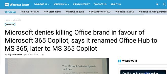 来源:环球网 【环球网科技综合报道】1月10日消息,据海外科技媒体Windows Latest透露,微软方面表示,Office品 牌并未消失。此前Office应用更名为Microsoft 365 Copilot,而该应用本身又是在更早由Microsoft 365更 名而来。 外媒认为,这一系列命名变动,恰恰暴露了微软在产品命名上的混乱——随着Copilot功能在公司内部的 推广,这种情况似乎愈发严重。但为何近期"Office已死"的说法会再度流传? 此前,X平台上出现了几篇广泛传播的帖子,特别是Perplexity AI发布的帖子,声称微软已弃用Office品 牌,并称一夜之间有数百万用户转向了人工智能。随后,微软对此进行了澄清。 他进一步说明:"2022年11月,我们将面向网页和移动端的Office'中心'应用更名为Microsoft 365应用。 2025年1月,我们又将其更新为Microsoft 365 Copilot应用,以体现该应用在整合Copilot与Microsoft 365 生产力体验至同一平台中所起的作用。" 那么,既然Office名称依然存在,并且是Microsoft 365的一部分,Mi ...