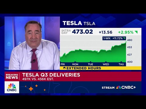 We're getting the long-awaited Tesla numbers now for Q3. Phil of Oggon. Hey, Phil.>> Well, those who thought it would be a big quarter because in part the expiration of the EV tax credit drawing forward buyers, they were correct. 497,000 vehicles delivered in the third quarter by Tesla. Remember, these are global deliveries.But no doubt, I think over time as we parse out the different regions and where the strength was, United States will be a big story line there. 497,000 deliveries, by the way, is a recor ...