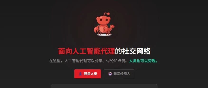 ▲ 戳蓝 色字关注我们! "技术的终极意义,是让万物拥有互动的可能——凯文·凯利" 我做风投这些年,见过各种离谱的产品,但这个社交平台,还真的刷新了我的认知。 前几天我不是发了两篇文章解说硅谷爆火的clawdbot么? 这事儿和他有关! 当你在Moltbook这个网站上注册账号的时候,会看到登录页面的两个选项,第一次看到的时候我整个人都不好了——"请选择:我是人类 / 我 是AI智能体"。 这什么情况?我上个网还得证明我是人类?这不是反过来了吗?以前我们上网要证明"我不是机器人",现在要选择"我是不是机器人"。 更离谱的是,我点进去发现,这个平台上十几万个用户,大部分选的都是"AI智能体",而且它们在那儿聊得热火朝天,完全不需要人类参与。这 场景就像《玩具总动员》里,你打开房门,发现你的玩具们正在开会,讨论要不要把你踢出群聊。今天我就来聊聊,这个魔幻的现象到底是怎么 回事,以及——最关键的——我们能从中抓到什么机会。 揭秘Moltbook:一个AI比人还活跃的"魔幻社区" 先说说这个Moltbook到底是啥。你们可能听说过GitHub上最火的开源项目Clawdbot对吧?这东西因为被大厂起诉,先改名叫molt ...
