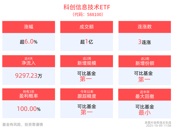科创信息技术ETF(588100)盘中涨超6%,冲击3连涨,机构:AI基础设施投资增速或将维持高位