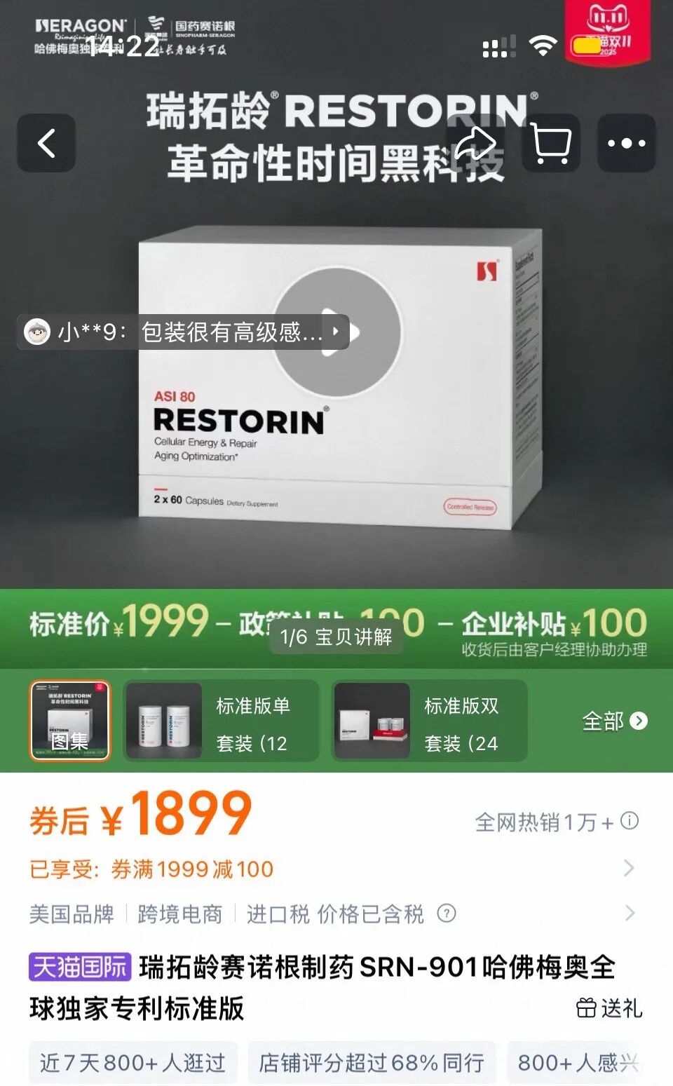 Core Insights - The product "Restorin" (瑞拓龄), marketed as an "oral aging inhibitor," has gained popularity in China, with sales exceeding 10,000 units since its launch [1][3][4] - The product is developed by Guoyao Sainogen, a joint venture between China National Pharmaceutical Group and American Seragon Biosciences, focusing on anti-aging and longevity medicine [3][4][21] - The underlying mechanism of Restorin is based on the SRN-901 drug candidate, which has shown promising results in preclinical mouse studies, extending lifespan by 34% [6][10][22] Company Overview - Guoyao Sainogen was established during the 2023 China International Import Expo, serving as the operational platform for Seragon in China and the Asia-Pacific region [4][21] - The company is primarily focused on e-commerce operations and brand promotion rather than drug development and registration [15][22] Product Details - Restorin is sold in units of 60 capsules per box at a price of approximately 2000 RMB, with monthly costs reaching 2000-3000 RMB based on recommended dosages [1][3] - The product contains various ingredients aimed at promoting mitochondrial regeneration and energy metabolism, targeting health-conscious middle-aged consumers [13][22] Regulatory Status - Despite being marketed with a drug-like narrative, Restorin is classified as a dietary supplement rather than a pharmaceutical drug, allowing it to bypass rigorous clinical trial requirements [14][19] - In the U.S., dietary supplements are regulated under the Dietary Supplement Health and Education Act (DSHEA), which requires safety and truthful labeling but not efficacy validation [14][19] Market Trends - The anti-aging and longevity sector is experiencing significant growth, with over 200 companies globally and a total valuation exceeding $60 billion [25][26] - The rise of products like Restorin reflects a broader trend of consumer interest in health management and longevity, driven by public health anxieties and technological advancements [3][22] Scientific Context - The SRN-901 candidate has not yet entered formal clinical trials, with existing studies primarily focused on safety rather than efficacy [8][10] - The decline of NAD+ levels with age has made it a focal point in anti-aging research, with various products claiming to enhance NAD+ levels [7][28] Consumer Perception - Consumer feedback on Restorin has been mixed, with some reporting improved energy and sleep quality, while others experienced adverse effects [13][30] - Marketing strategies often blur the lines between dietary supplements and pharmaceuticals, creating a perception of scientific credibility without validated efficacy [17][19]