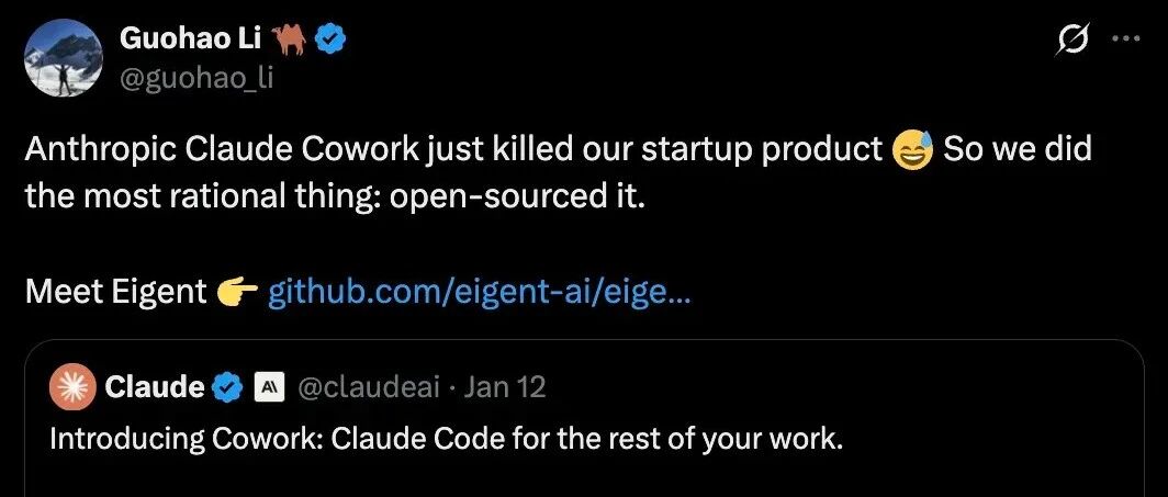 开源版 Cowork 项目在 X 爆火,创始人:感谢 Cowork,让我们三年的探索被看到