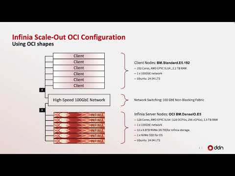 Welcome to this demonstration. Today we're going to show you a brief look at the performance of DDN Infinia in Oracle Cloud Infrastructure. Because this is a tech preview, the information presented is for potential future integrations.The overall capabilities, including the performance of this feature, can and will change. No timelines for delivering this capability should be inferred from this demo. The Infinia architecture provides a broad set of capabilities for data management.starting with a variety of ...