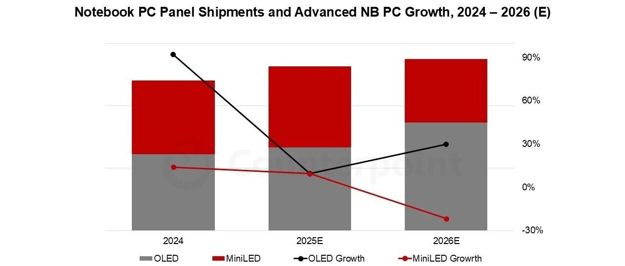 Core Insights - The global PC panel shipment is expected to grow by 4% year-on-year in 2025, with high-end PCs accounting for approximately 8% of the market share [4][5] - High-end PC panel shipments are projected to increase by 9% year-on-year in 2025, while OLED laptop panel shipments are also expected to grow by 9% [5] - In 2026, OLED laptop shipments are anticipated to grow at an annual rate of 30%, driven by the launch of Apple's 14.3-inch and 16.3-inch OLED MacBook Pro models [5] Market Trends - The demand for high-end PC panels is supported by enterprise device upgrades, software enhancements, and AI technology implementation, indicating a robust market outlook for 2025 [7] - The adoption of OLED and MiniLED technologies in high-end PC panels is expected to contribute to the overall growth in the PC display panel market [5][7] Company Overview - Counterpoint Research is a global market research firm focused on the technology ecosystem, providing insights across various sectors including AI, consumer electronics, and semiconductors [9]