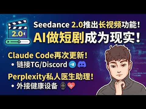 seedance2.0推出长视频功能,ai做短剧成为现实!claude再次更新,可以链接tg和discord,perplexity可以外接健康设备成为私人医生助理【Vic TALK第1603期】