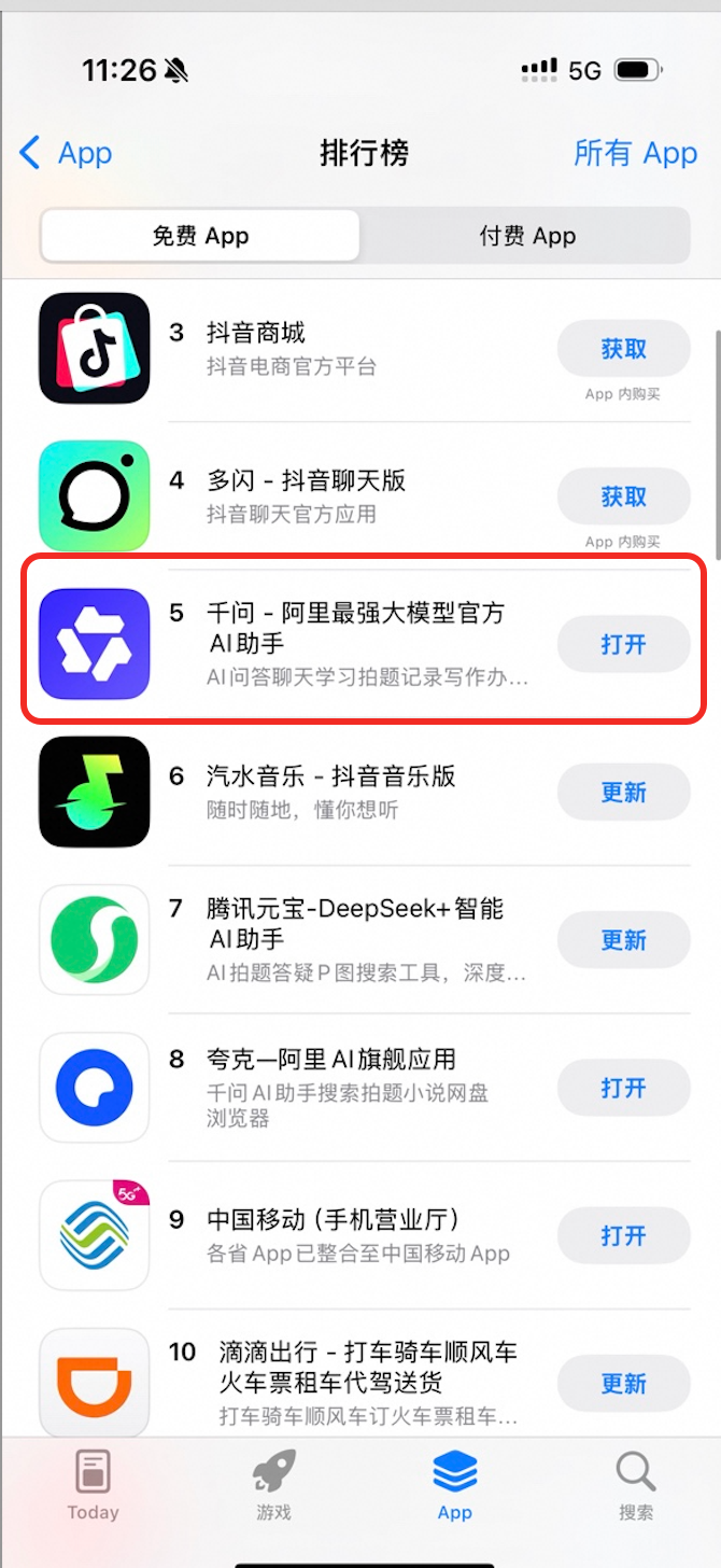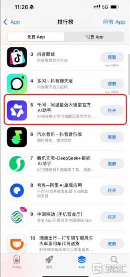 阿里千问APP上线一天即冲入总榜前五,超越Deepseek