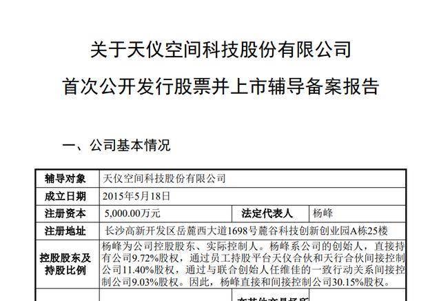 据上市辅导备案报告,天仪研究院成立于2015年5月18日,注册资本5000万元,法定代表人为杨峰,股 权关系方面,杨峰为公司控股股东、实际控制人,杨峰直接和间接控制公司30.15%股权。 天仪研究院官网显示,公司是SAR卫星星座运营商,致力于为用户提供SAR星座建设和SAR卫星数据一 体化服务。 北京商报讯(记者 马换换 李佳雪)2月2日,证监会官网显示,天仪空间科技股份有限公司(以下简 称"天仪研究院")启动上市辅导,辅导机构为国泰海通证券股份有限公司。 ...