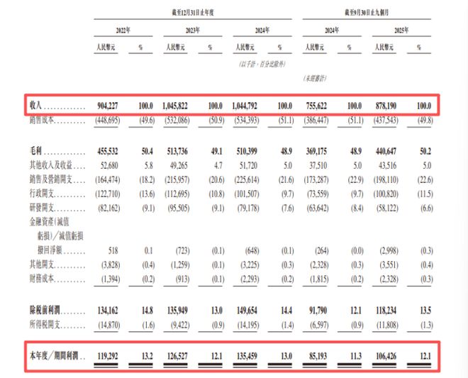 Core Viewpoint - The company Future Health is attempting to go public on the Hong Kong Stock Exchange after unsuccessful attempts to list on the A-share market, highlighting concerns over its marketing-heavy strategy and low R&D investment [1][2]. Group 1: Company Performance - Future Health has shown steady net profit growth over the past three years, with high gross margins around 50%, significantly exceeding typical household appliance margins [1][5]. - The company's revenue for 2022, 2023, and 2024 is reported at 904 million, 1.046 billion, and 1.045 billion respectively, with net profits of 119 million, 127 million, and 135 million [2]. - In the first nine months of 2025, the company achieved a revenue of 878 million and a net profit of 106 million [2]. Group 2: Marketing and R&D Strategy - Future Health's marketing expenses have increased, accounting for 22.6% of revenue, while R&D investment has decreased to 6.6% [1][7]. - The company relies heavily on online sales channels, which contributed 60.2% of its revenue in 2022, decreasing to 49.3% by 2025 [6]. - The company employs various marketing strategies, including celebrity endorsements and social media engagement, with marketing expenses rising from 1.64 billion in 2022 to 1.98 billion in the first nine months of 2025 [6][7]. Group 3: Financial Practices and Concerns - Future Health has distributed a total of 280 million in dividends prior to its IPO, raising concerns about its financial practices, especially as it simultaneously increased its debt from 94 million to 204 million [8]. - The company's ownership structure is heavily concentrated, with the founders controlling over 85% of the voting rights, leading to questions about governance and financial transparency [8]. Group 4: Industry Context - The wearable health device market in China is projected to grow from 30.9 billion in 2019 to 61.5 billion by 2024, with a compound annual growth rate of 15.9% expected from 2024 to 2029 [3]. - Future Health is positioned as a leader in the smart wearable health device sector, holding a 21.5% market share in 2024 [2]. - The competitive landscape is characterized by a focus on technology and market segmentation, with leading companies holding over 25% of the market share [4].
