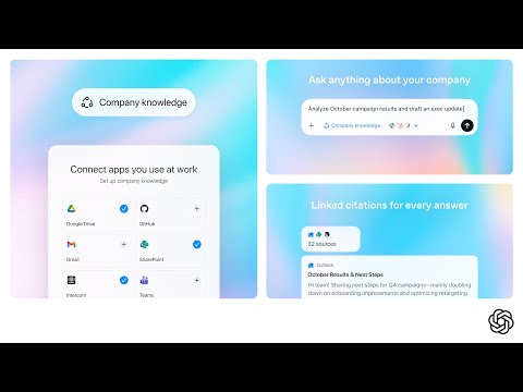 Product Introduction - Introduces "Company Knowledge," a new feature in ChatGPT for business use [1] - Company Knowledge is powered by an optimized version of GPT-5 [1] - The feature connects to apps like Slack, SharePoint, Google Drive, and GitHub [1] - It aims to provide accurate, cited answers based on workplace data [1] - Data privacy, protection, and control are emphasized [1] Target Audience - Available for ChatGPT Business, Enterprise, and Edu users [1]