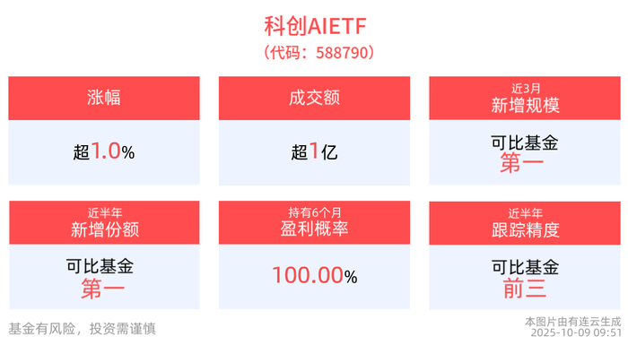 Core Insights - The AI sector is experiencing significant growth, with the Shanghai Stock Exchange's Sci-Tech Innovation Board AI Index rising by 1.28% as of October 9, 2025, driven by strong performances from key stocks like Chipone Technology and Lattice Semiconductor [2] - OpenAI has made notable advancements, including the launch of its video generation model Sora 2.0, which is expected to revolutionize the video generation field [4] - Citigroup analysts have raised their AI capital expenditure forecast for 2026 from $420 billion to $490 billion, indicating a growth expectation of 24%, surpassing the current market consensus of 20% [3] Industry Developments - Ant Group's AI model Ring-1T, with a parameter count of 1 trillion, was announced as open-source on September 30, 2025, highlighting advancements in AI model capabilities [2] - OpenAI's partnership with major chip manufacturers like Samsung and SK Hynix for the "Stargate" project signifies a strategic move to enhance hardware support for AI applications [4] - The AI video generation market is projected to reach a trillion-dollar valuation, driven by the successful integration of social features in Sora 2, which has quickly topped the U.S. iOS app charts [6] Market Performance - The Sci-Tech AI ETF (588790) has shown strong performance, with a 2.56% increase over the last two weeks and a daily average trading volume of 747 million yuan over the past month, ranking first among comparable funds [2][8] - The ETF's assets have grown by 2.642 billion yuan over the past three months, indicating robust investor interest and confidence in the AI sector [8] - The top ten weighted stocks in the Sci-Tech AI Index account for 71.9% of the index, with companies like Lattice Semiconductor and Chipone Technology leading the way [9]