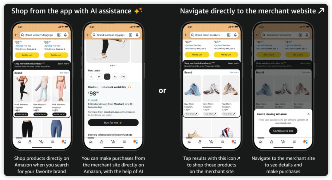 Core Viewpoint - Amazon is testing a new shopping feature called "Shop Direct," which allows consumers to purchase products not listed on Amazon but available on independent sites, indicating a strategic shift to integrate external product offerings into its platform [4][10][18]. Group 1: Shop Direct Feature - The "Shop Direct" feature enables users to see links to independent sites when searching for products on Amazon, facilitating direct purchases from those sites [4][6]. - This feature is currently in a testing phase and is only available to a limited number of users in the U.S. [4][10]. - The introduction of "Shop Direct" is part of Amazon's strategy to enhance its product offerings and maintain its position as a primary online shopping destination amidst competition from AI-driven shopping platforms [10][28]. Group 2: Impact on Independent Sellers - Some independent sellers have reported increased sales, attributing this growth to the traffic driven by Amazon's "Shop Direct" feature [21][22]. - However, there are concerns among independent sellers that Amazon may leverage user data to compete against them in the future, potentially leading to a reliance on Amazon for traffic that could become monetized [22][23]. - Amazon has stated that the initiative aims to help sellers reach more customers, and sellers can opt out if they do not wish to participate [22][23]. Group 3: Competitive Landscape - Amazon's traditional dominance as an online shopping gateway is being challenged by AI models like ChatGPT and Gemini, which offer integrated shopping experiences without redirecting users to third-party sites [27][28]. - The "Shop Direct" feature is seen as a response to this competitive pressure, allowing Amazon to incorporate a wider range of products from independent sites into its ecosystem [10][28]. - The company is also enhancing its AI shopping assistant, Rufus, to improve user engagement and conversion rates, with a reported 60% increase in order completion when using the assistant [30][33].