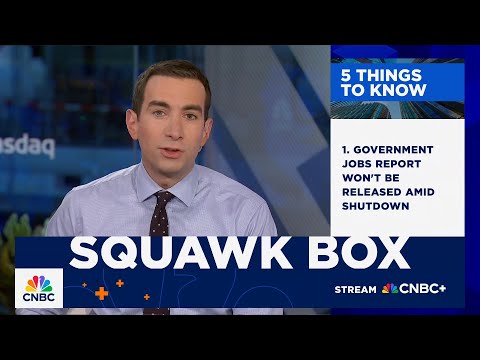 Five things to know ahead of today's opening bell. It is the first Friday of October, but the DC shutdown means that there will be no monthly jobs report released today. In corporate news, Black Rockck's global infrastructure partners reportedly now in advanced talks to acquire aligned data centers.Now, Bloomberg says that deal could be valued at $40 billion. And earlier this week, reports said that Global Infrastructure Partners was also looking at other big deals. Those included a potential takeover of th ...