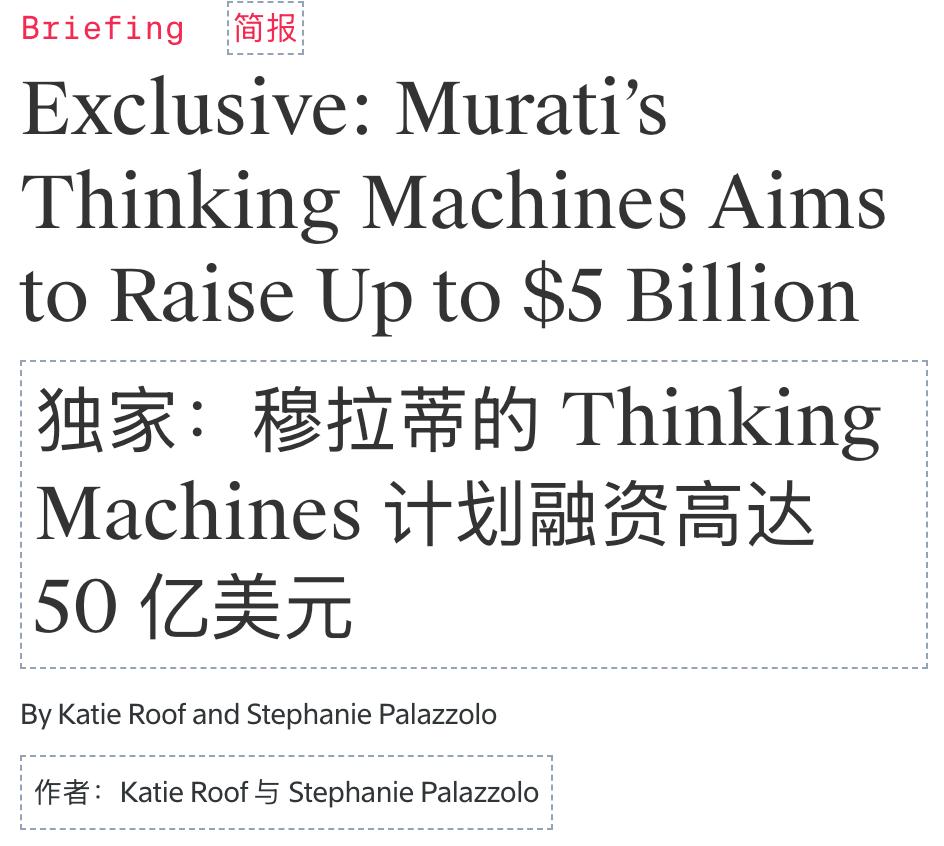 【新智元导读】硅谷天选之女的创业公司又创纪录,一个500亿美金(3500亿人民币)的超级估值! 这哪里是创业,简直是硅谷版「无中生有」,光靠 「刷脸」了! Thinking Machines Lab又要融资了,这次要筹集40亿至50亿美元。 这些消息是外媒独家流出的。目前还没有被各大媒体确认。但是八九不离十了。 Thinking Machines Lab此前已筹集了20亿美元资金,最近一次的估值为100亿美元。 你也不能说Thinking Machines Lab是0产品,毕竟10月,Thinking Machines推出了Tinker。 这是一个应用程序编程接口,允许开发者对开源模型进行微调或调整。 网上有人分享了Tinker的一些操作界面,还有待考证。 相比Cursor的290亿美金估值,Thinking Machines Lab啥也没有就已经估值500亿了! 你就说泡沫大不大吧! 500亿美金是什么概念?3500亿人民币! 就是放A股能排到前40名之前。 | 沪深A股 | > | 创业板 | 科创板 | CDR | 新股 | | --- | --- | --- | --- | --- | --- | | ...