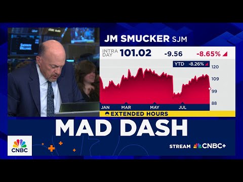 Oh, hey, that's me. I'm looking at all these I don't know mascots for the Big 10. Sorry.>> Right. Well, you got Abbott Labs here, Blood. >> We got Abbott Labs and Blood and then we got a bunch of Big 10 mascots and we're still trying to figure that out.But you know what we can figure out is a Mad Dash. What do you >> Okay, David. Smuckers, the stock, as Carl mentioned, is down really badly.And u September 11 of 2023, they bought a company called Hostess. Okay. And they paid $5.6% six billion dollars includi ...