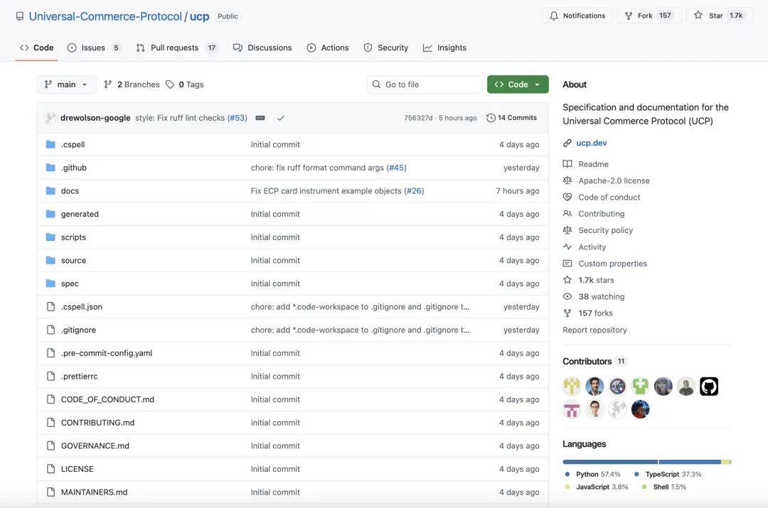 整理 | Tina 谷歌把"Agent 购物"这件事,推到了一个更标准化的层面:Universal Commerce Protocol(UCP)正式亮相。 近日(1 月 11 日),谷歌 CEO Sundar Pichai(绰号"劈柴") 首次登上 NRF(美国零售联合会年会),在题为"人工智 能平台转型及零售业的未来机遇"的主题演讲中宣布了该协议。 按照谷歌的说法,UCP 是一项新的开放标准,目标是让 Agent 能够在线上直接买东西。在实现机制上,UCP 通过定义一 组"代理商务的构建模块",把端到端的购物流程拆解成可复用的能力组件:既覆盖推动商品发现与购买的关键动作,也延 伸到下单后的体验与服务等环节。 谷歌表示,这套设计将让生态系统在同一套标准下实现互操作,使任何 Agent 都能与任意商家进行对话,并自主完成从商 品发现到结账的完整购物流程。 | Universal-Commerce-Protocol/ucp Public | | | Notifications & Fork 157 27 Star 1.7k | | --- | --- | --- | --- | | <> Code · Issue ...