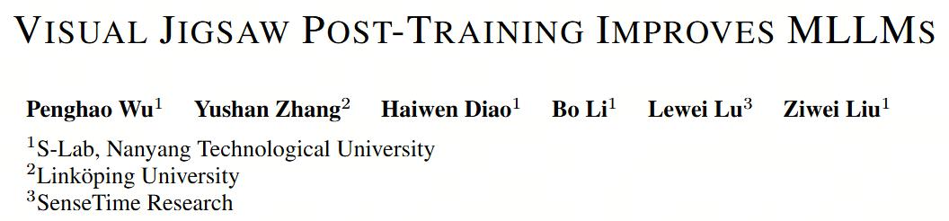 VisualJigsaw团队 投稿 量子位 | 公众号 QbitAI 在多模态大模型的后训练浪潮中,强化学习驱动的范式已成为提升模型推理与通用能力的关键方向。 然而,大多数现有方法仍 以文本为中心 ,视觉部分常被动地作为辅助信号输入。相比之下,我们认为在后训练阶段重新审视 视觉自监督学 习 的潜力,设计 以视觉为中心 的后训练对于增强多模态大模型对于视觉信息本身的细粒度深入理解也同样至关重要。 为此,来自MMLab@南洋理工大学的最新论文 《Visual Jigsaw Post-Training Improves MLLMs》 提出了一种全新的针对多模态大模 型后训练任务- Visual Jigsaw 。 它将经典的自监督拼图任务重新设计为多模态大模型后训练阶段的核心目标,让模型在不依赖额外标注、也无需视觉生成模块的情况下,显式 强化自身的视觉感知与理解能力。在图片,视频,和3D三种视觉模态下都验证了其有效性。 Visual Jigsaw 方法简介 对于不同视觉模态,具体的Visual Jigsaw任务设计如下 Image Jigsaw: 图片在2D空间上被划分为 个相同大小的子图,打乱后模型需恢复正确的空间 ...