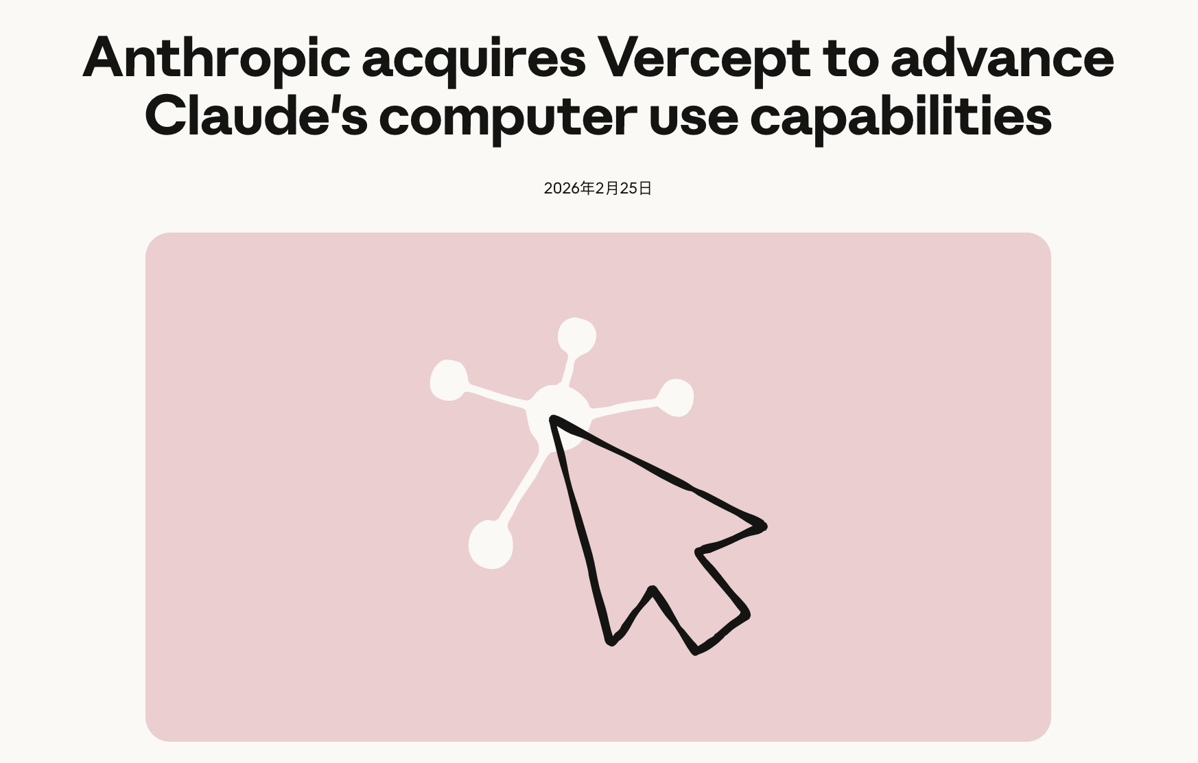 北京时间2月26日,美国AI头部公司Anthropic宣布收购视觉驱动计算机自动化AI初创公司Vercept ,补全 Computer Use功能的视觉短板。这是继2025年12月收购全栈工具链初创公司Bun后,Anthropic第二笔收 购案。 Computer Use是Anthropic为旗下大模型Claude打造的AI 直接操控电脑的核心能力,让Claude可以像人一 样"看屏幕、动鼠标、敲键盘、操作软件",完成多步骤、跨应用的复杂任务,于2024年10月随Claude 3.5 Sonnet一同发布。 但由于模型早期在视觉理解精度、复杂界面识别、动态场景处理方面存在瓶颈,导致Computer Use操作 成功率低、任务易失败。而Vercept在高精度UI识别、空间推理、动态界面跟踪、低延迟视觉处理等方 面的积累,正好可以补齐上述短板。 据Anthropic官方披露,开发者正使用Claude来处理越来越复杂的工作,包括编写和运行整个仓库的代 码,综合数十个来源的研究,管理跨多个工具和团队的工作流程等。Computer Use能让Claude像人坐在 电脑前一样,在各种软件里实时操作,完成很多只靠代码搞不定 ...