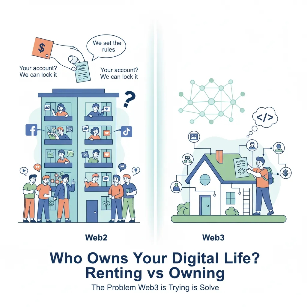 神译局是36氪旗下编译团队,关注科技、商业、职场、生活等领域,重点介绍国外的新技术、新观点、新风向。 编者按:Web3远非只是加密货币与头像,它关乎更本质的问题:谁是你数字生活的主人?从被动的"平台租客"转向拥有"数字产权"的业主,正在 成为新的分野。Web3的核心是数字所有权和治理权,这不仅是技术概念,更是重塑每个人线上生存方式的关键。本文带你穿透术语,理解这场 从"拥有什么"到"如何拥有"的深刻变革。 文章来自编译。 图片由Gemini生成 坦白说,外界对 Web3 的解释常常让人望而却步。各种"去中心化""区块链"等技术术语堆在一起,很难读懂,也容易让人觉得那是技术圈的事 情,与自己无关。 可这正是误解的来源。Web3 并不等于比特币价格,也不是那些币种的卡通头像,而是回到更基础的议题,即所有权本身。 回想你每天的数字生活。你发的照片、好友列表、点赞记录究竟属于谁?谁真正掌控你的线上身份?答案并不复杂,掌控权在平台手中。 Facebook 订规则,Google 决定你看到的信息,TikTok 的算法决定什么流行。我们像住在平台提供的数字公寓里,以注意力付"房租",却不拥有其 中任何部分。 一句常被忽略的 ...