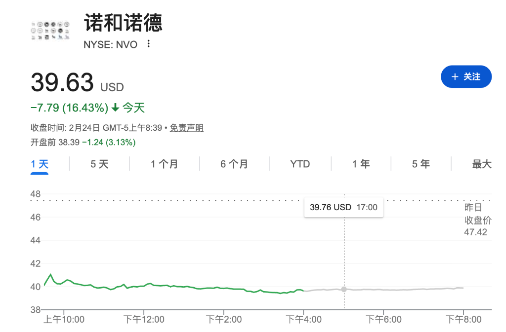 礼来盘前下跌 诺和诺德将下调Ozempic和Wegovy在美国的价格