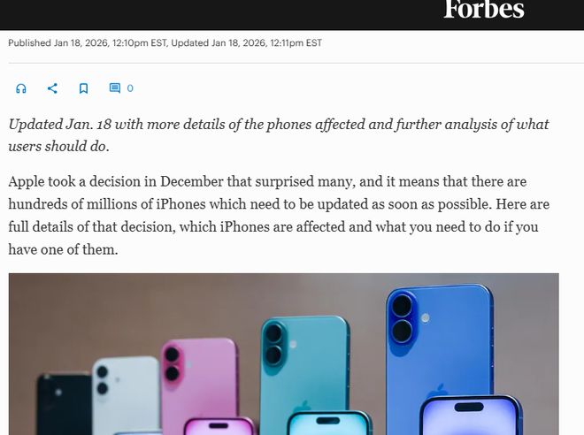 Apple Confirms iPhone Decision—You Must Upgrade iOS 18 To iOS 26.2 NowApple has warned devices are now under attack. But iOS 18.7.3 also fixed the vulnerabilities, and it seemed users would have a choice. But that’s not the case.https://t.co/g3HCcsgqmo (Photo: NurPhoto via Getty Images) ...